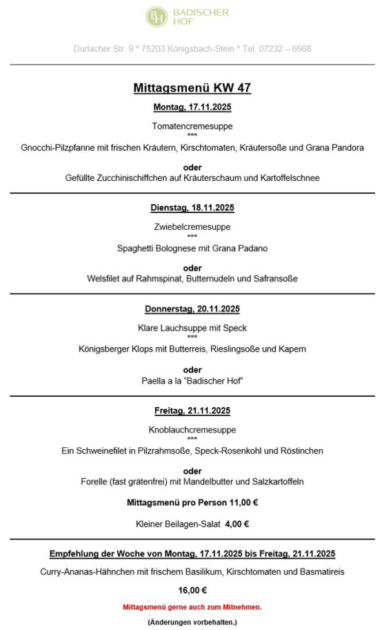 wöchentlich wechselnder Mittagstisch KW 47-2025 (17.11 - 21.11.2025)