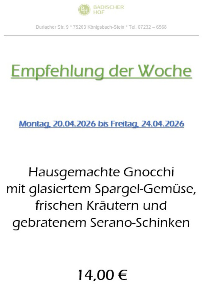 Saisonale Aktionen, Specials aus der Küche, lassen Sie sich verwöhnen.