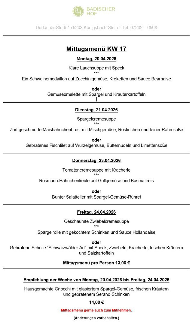 wöchentlich wechselnder Mittagstisch KW 17 - 2026 (20.04.- 24.04.2026)